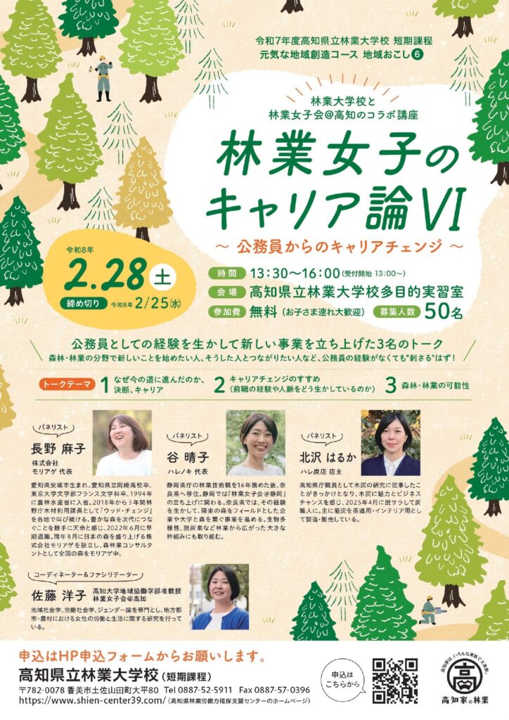 林業大学校林業女子会@高知とのコラボ企画、「林業女子のキャリア論Ⅵ」を開催します。