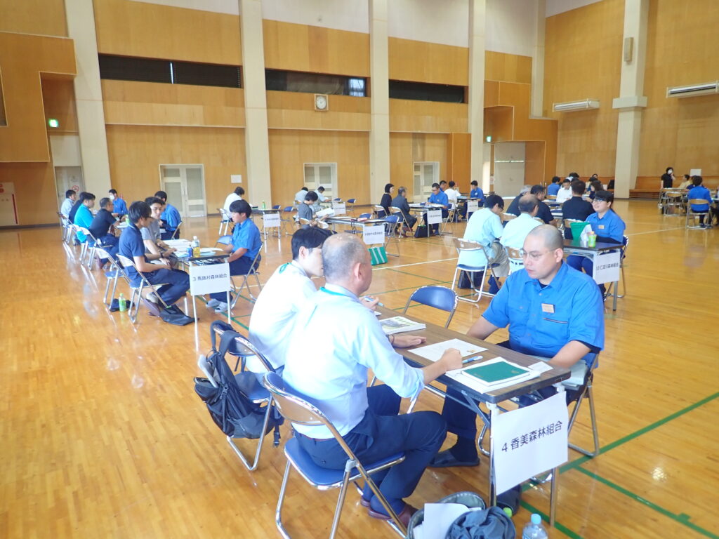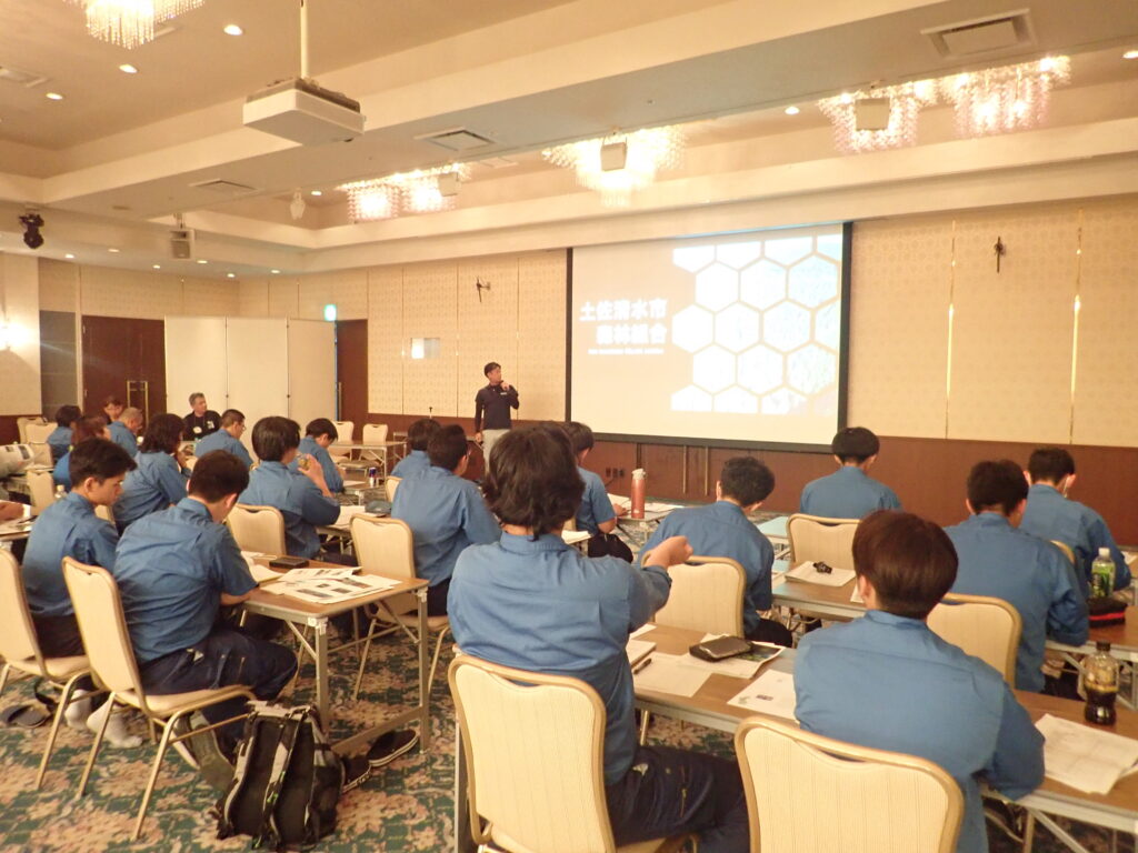 本校ではインターンシップに先立ち、2日間、県内の林業事業体にお集まりいただいて、研修生向けの就業ガイダンスを行っております。