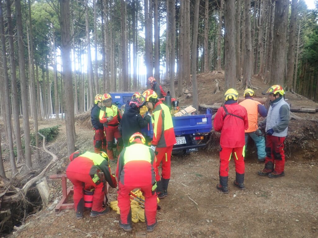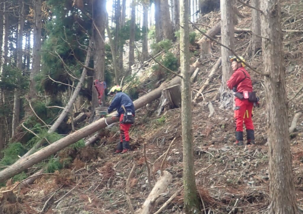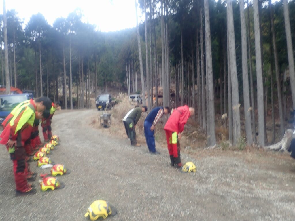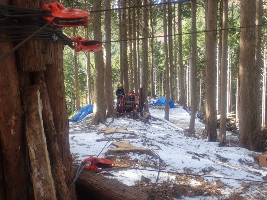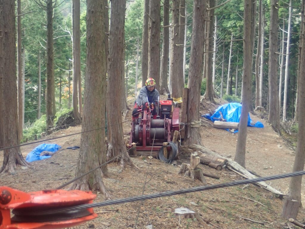 最後には架線と集材機の撤去作業を行い、今年一年の無事を山の神様に感謝して下山しました。