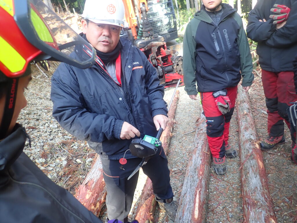 今回の実習では、先週の視察や講義で学んだバリューバッキングシステムを搭載したハーベスタ、ウインチ付きグラップルとフォワーダを使用します。