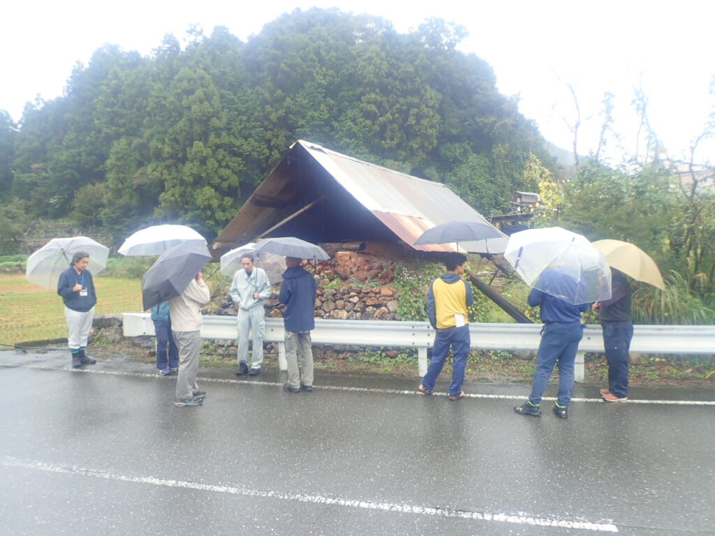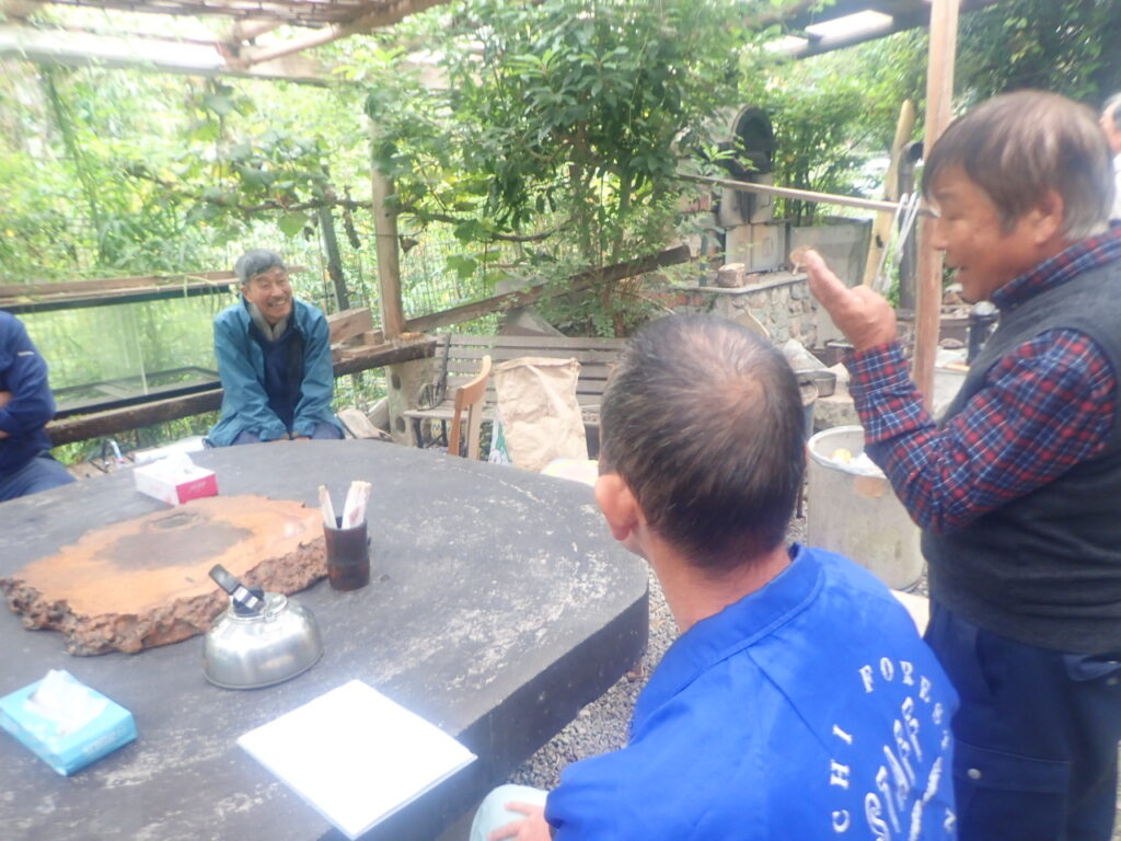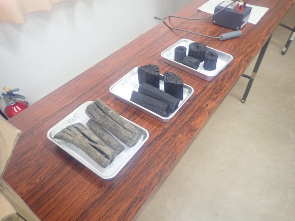 初日は森林技術センターの深田チーフから国産木炭の生産量や木炭の概要、黒炭と白炭(備長炭)の説明を聞いたあと、岡田さんの炭窯を見学しました。