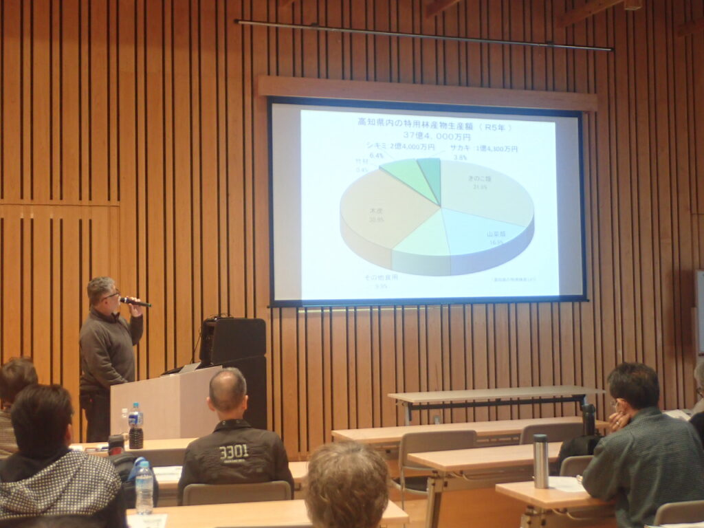 1日目は、森林技術センター藤本浩平チーフから、シキミ・サカキの生産状況や市場の話、栽培方法、病虫害対策について学びました。