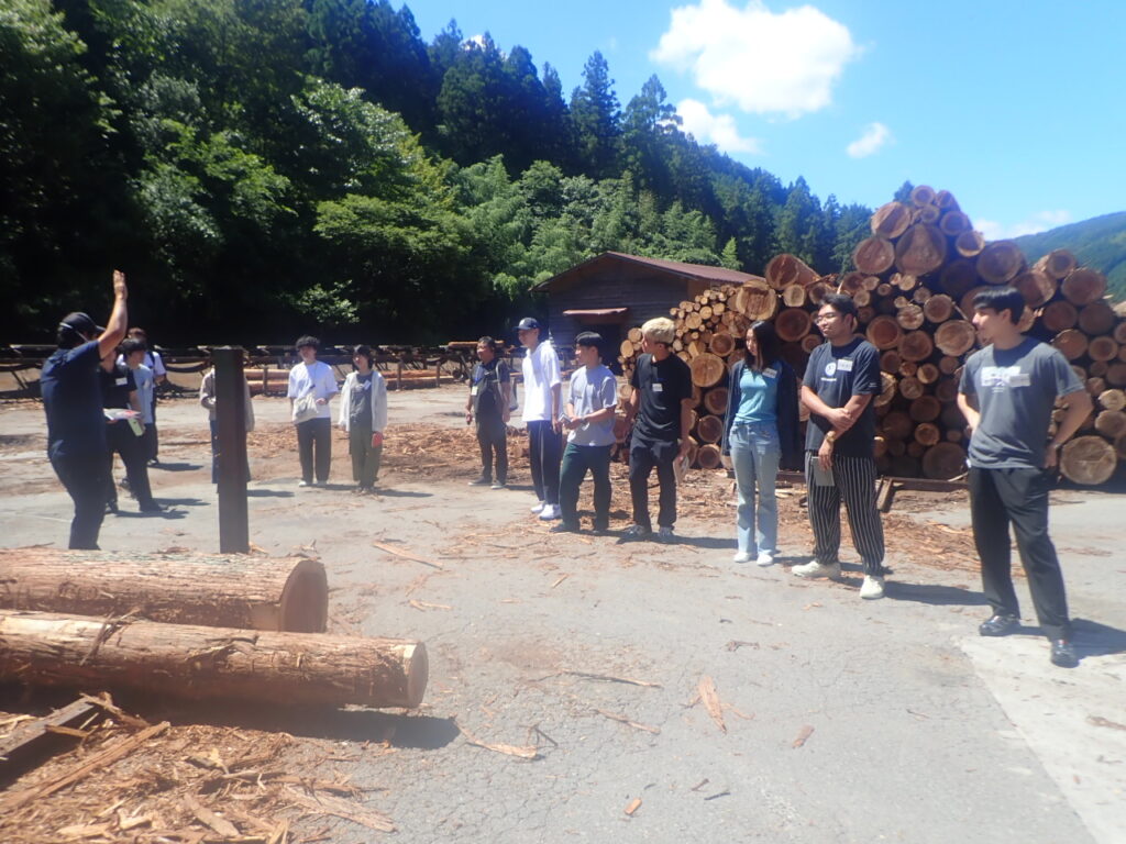 参加者の多くが建築資材としての材木を見たことがありますが、原木が製材されて材木になる過程を見ることが無いため、貴重な体験をすることができました。学生からもたくさんの質問があり、とても有意義な時間となりました。