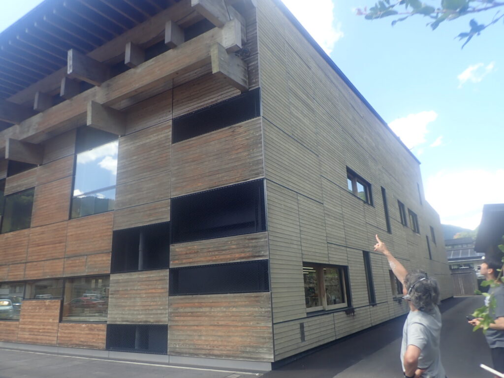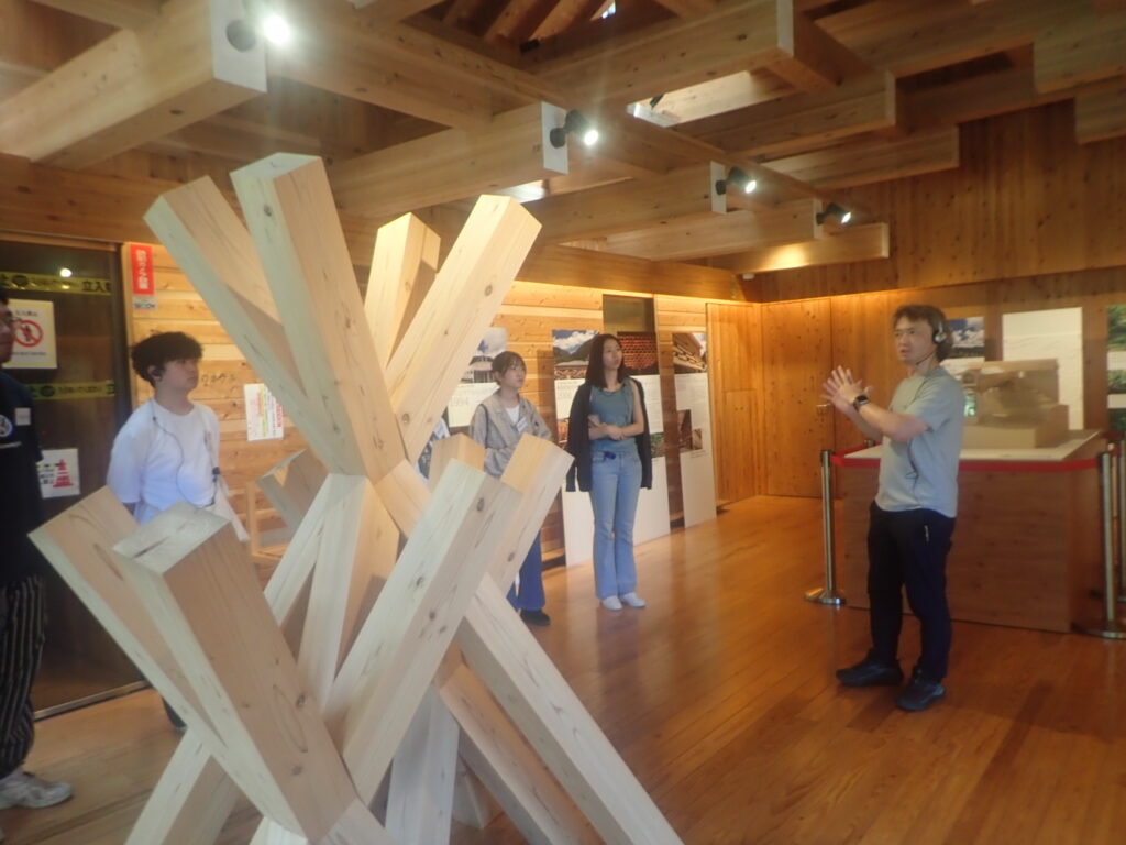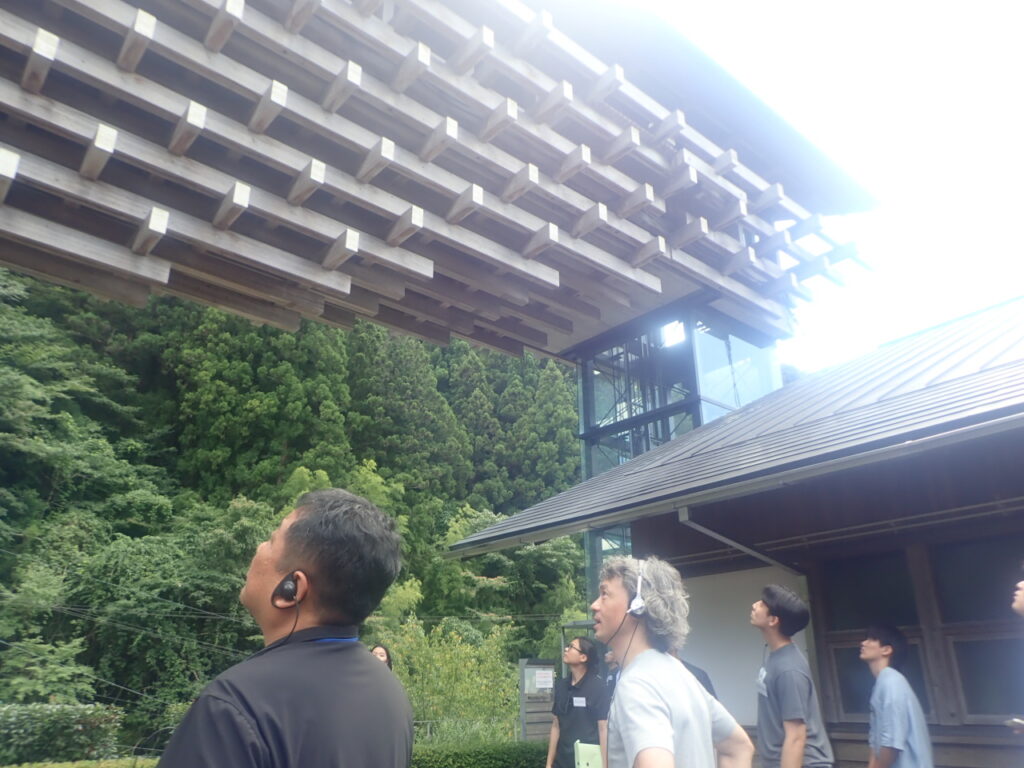 午後からは隈研吾校長の手がけられた建物の見学です。贅沢なことにいくつのもの設計に携わられた宮澤様に解説して頂きました。