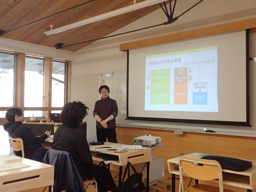 1月13日の講義では、先に学んだ森林施業プランを用いての施業の提案の際に注意すべき民有林に関係する税制を学びました。