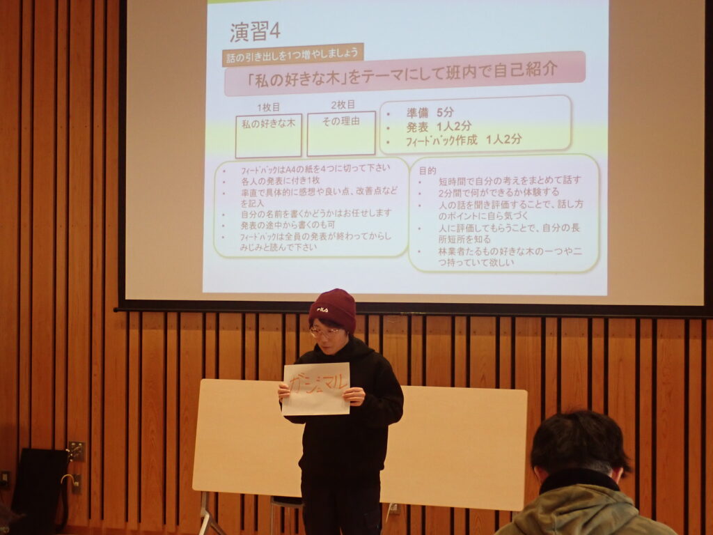 また、1月14日から15日の講義では、プランを作成する際に必要になるコスト計算、森林所有者に提案する際に有用であるコミュニケーション技能を学びました。