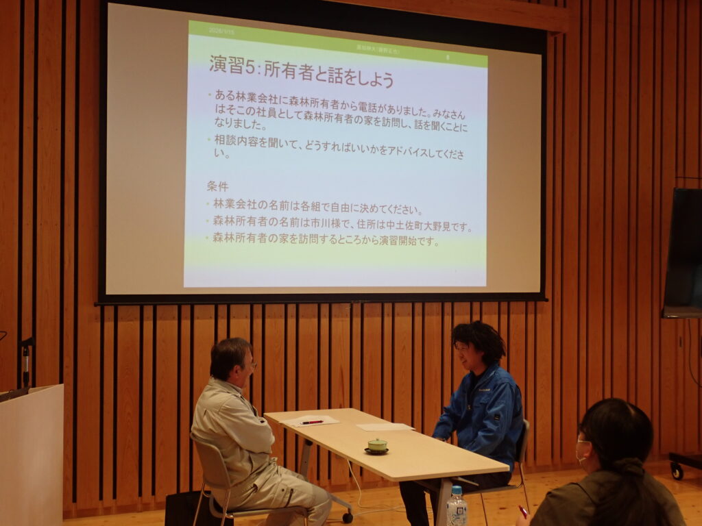 また、1月14日から15日の講義では、プランを作成する際に必要になるコスト計算、森林所有者に提案する際に有用であるコミュニケーション技能を学びました。