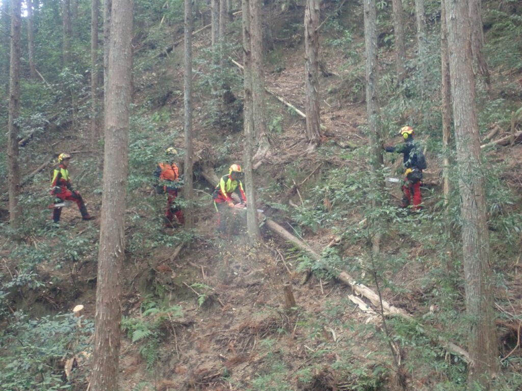 いつもの西又実習林と比べると傾斜が急な場所が多く、土質も滑りやすかったので足場を作るのに苦労していましたが、集中力を切らさないよう安全な作業に努めていました。