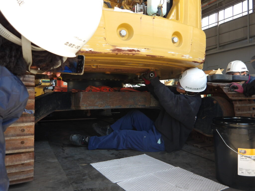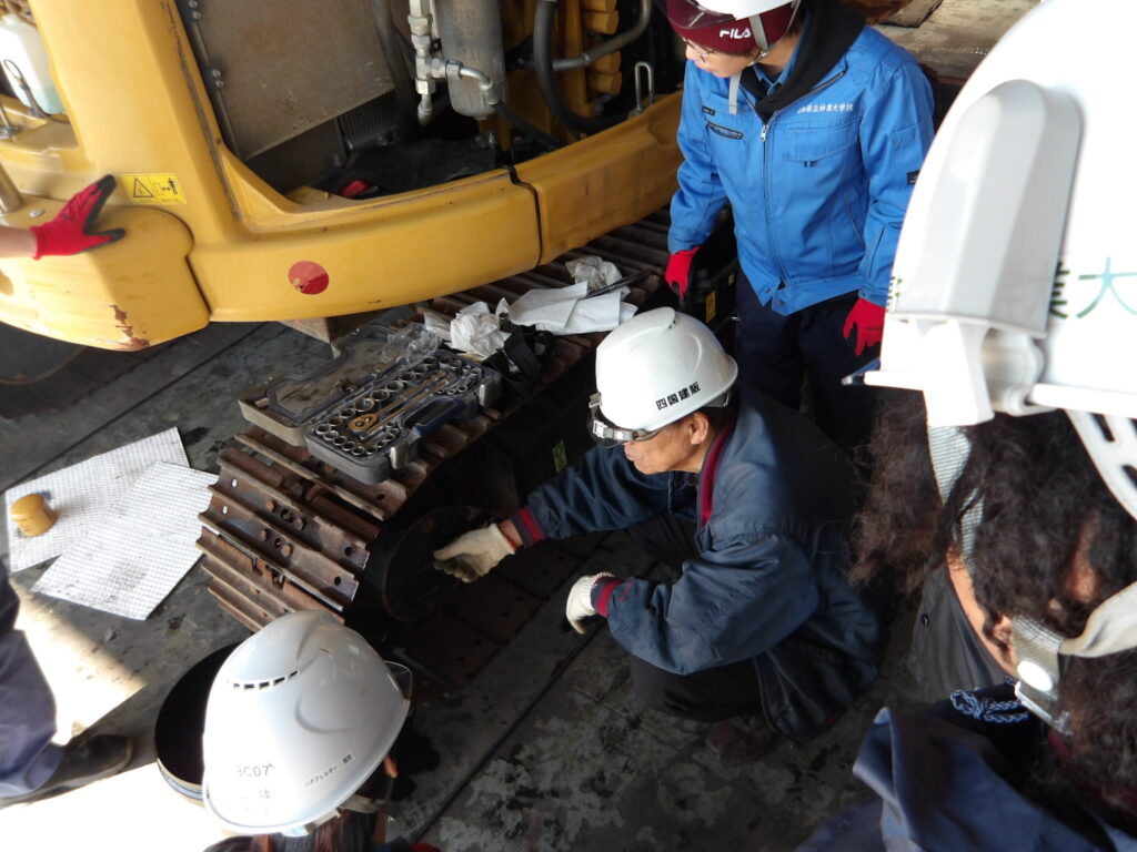 主に、機械の点検の際に注視すべき箇所や油脂類、フィルタ類などの適切な交換時期、作業前点検を含めた日々のメンテナンスの方法など、林業機械を使用するうえで実用的な技術を学び、これらが修理費の低減につながることを研修生は改めて認識することができました。